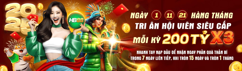 Nhằm tri ân khách hàng cũng như tạo động lực gắn bó lâu dài, nhà cái đã triển khai nhiều sự kiện ưu đãi hấp dẫn với thể lệ đơn giản, giá trị thưởng cao. Trong năm 2025, HB88 ghi dấu với nhiều sự kiện hot hit, chiếm được sự quan tâm và ưa thích từ cộng đồng người chơi. Bao gồm: